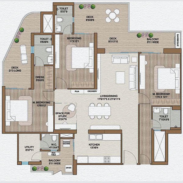 4 BHK 3006 Sq.Ft. 19500 Per 500 Edc/Idc +Car Parking 6Lakhs +Club 5 Lakhs +GST